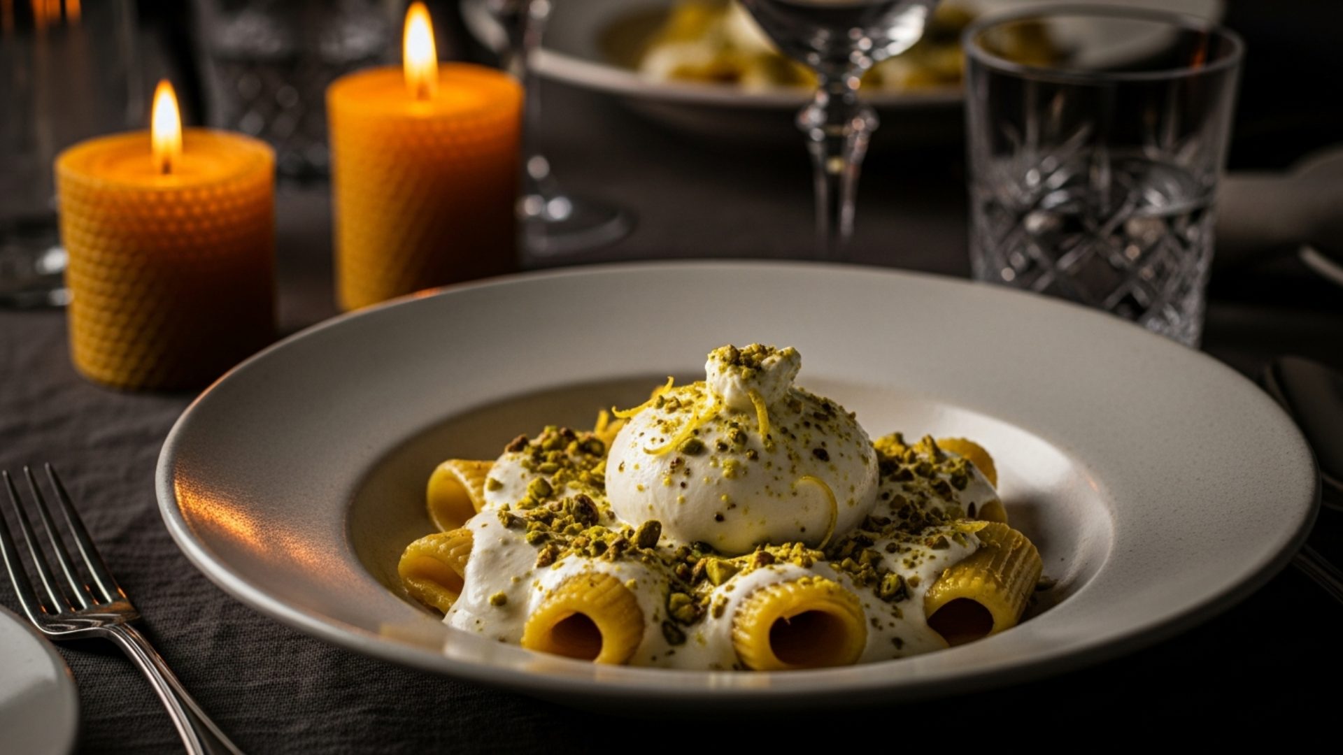La preparazione è disarmante nella sua semplicità tecnica ma complessa al palato. Mentre la pasta cuoce, si lavora una burrata freschissima in una ciotola con un filo d’olio extravergine d’oliva e pepe nero macinato al momento, fino a ottenere una crema liscia. Non serve fuoco. Una volta scolata la pasta al dente, la si manteca nella crema di latte lontano dai fornelli. Il tocco finale, quello che eleva il piatto a un livello da ristorante stellato, è la guarnizione: una generosa pioggia di granella di pistacchio di Bronte per la texture e la scorza grattugiata di un limone non trattato per la nota olfattiva. Il risultato è un piatto che appaga la vista con il contrasto tra il bianco candido e il verde brillante, e il gusto con l’alternanza di dolcezza e acidità.