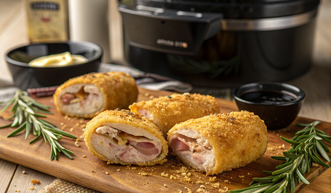 La tendenza a prediligere cotture più sane ha fatto emergere la friggitrice ad aria come l’alternativa ideale alla frittura tradizionale. Funzionando con un flusso di aria calda ad alta velocità, riesce a cuocere l’alimento in modo uniforme, creando all’esterno quella desiderata crosticina. Nel caso degli involtini di pollo, questo metodo esalta la panatura (spesso arricchita con parmigiano o erbe aromatiche) e mantiene la carne di pollo morbida e succosa all’interno, merito anche del ripieno filante di prosciutto e formaggio.