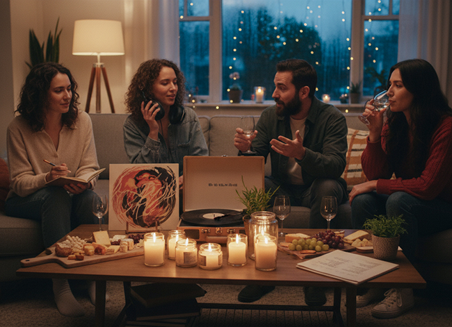 In un’epoca in cui la musica è spesso consumata in modo distratto e frammentato, il listening party è un’esperienza quasi meditativa. Si dedica l’intera serata all’ascolto consapevole di un album musicale dall’inizio alla fine – che sia un grande classico, un vinile ritrovato o un’uscita discografica recente. L’ambiente va preparato con luci soffuse e un buon impianto audio. Dopo una breve introduzione sull’album e sull’artista, si lascia che la musica parli, per poi aprire la discussione e lo scambio di impressioni davanti a un buon drink.