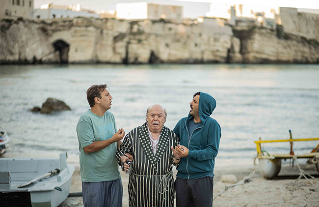 Pio e Amedeo con Lino Banfi in una scena del film
