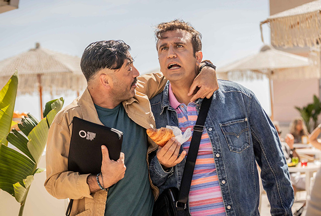 E, con Amedeo che, oltretutto padre di un’adolescente – la cui voce narrante accompagna il film – che gli darà qualche pensiero, esercita un grottesco controllo di tutto ciò che Pio e gli altri consumano nel posto, dall’aria condizionata alla carta igienica, è questa convivenza forzata a rappresentare il motore comico di Oi vita mia, basato come di consueto sul contrasto tra i due.